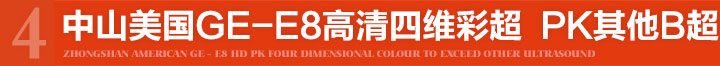 美国GE-E8四维彩超,是目前较为准确的彩色超声设备,具有高清晰、高辨别率、高准确度长处,能清晰观察胎儿各个部位发育情形,是筛查胎儿是否存在先天性畸形的专业设备。